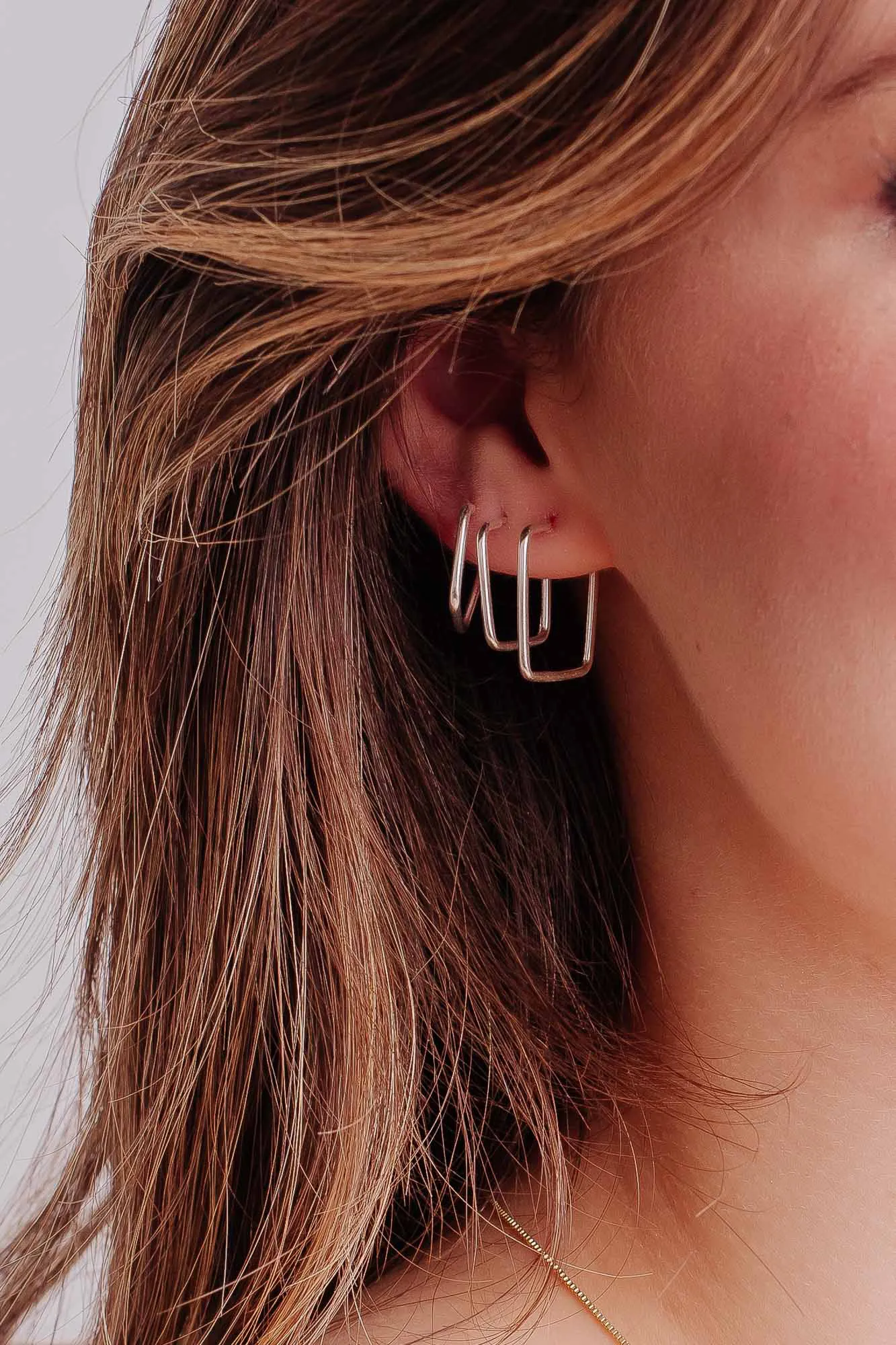 3 pares de argolas formato quadrado